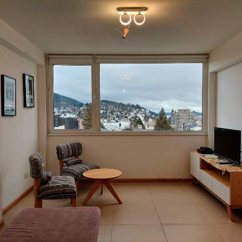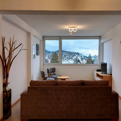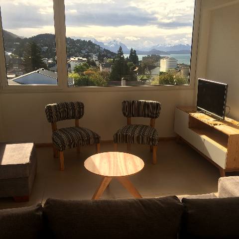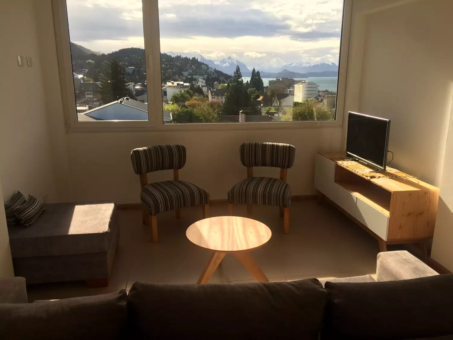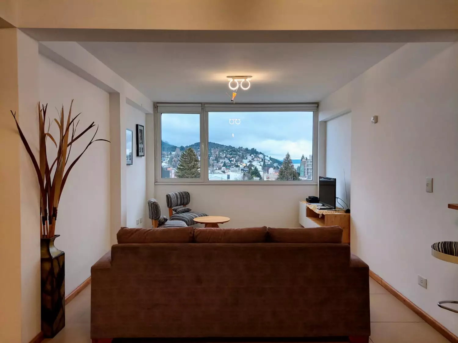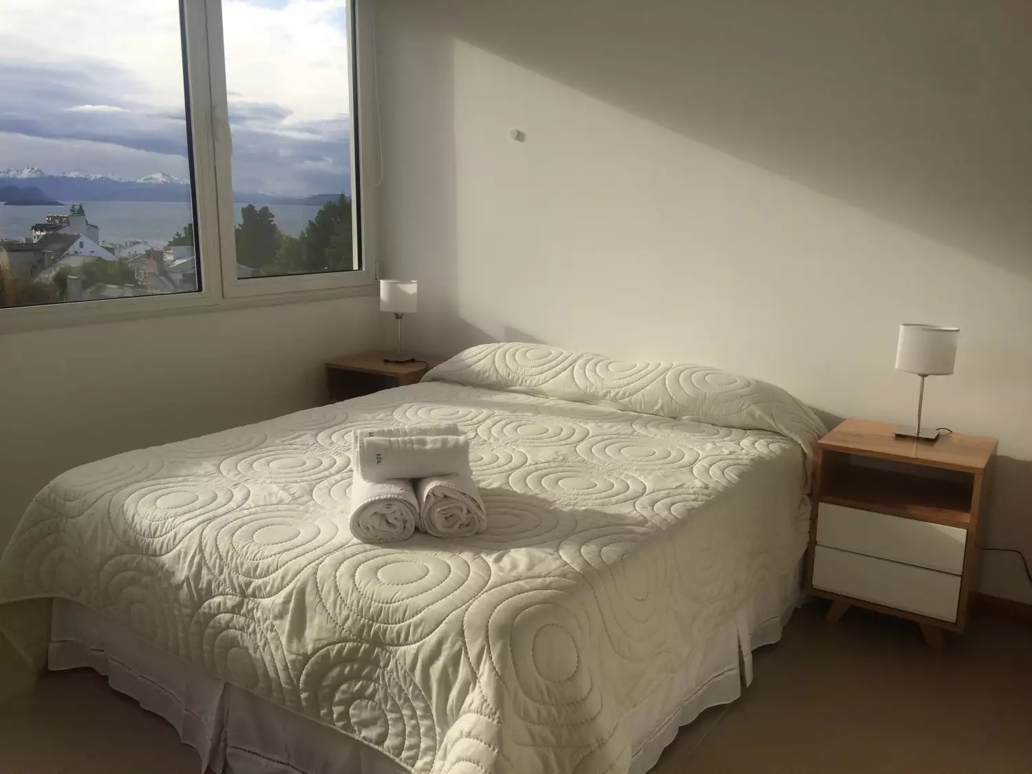 Departamento nuevo con increíble vista panorámica al lago, los cerros y la ciudad. Muy amplio ( 72 m2 ) y luminoso, con vista desde todos los ambientes. Tiene 2 baños completos, uno en suite en el Dormitorio con cama Queen . Ubicado en zona céntrica con variedad de negocios para abastecerte de todo lo que necesites, a solo 3’ del Supermercado, shopping y cine , a 6’ del Centro Cívico y de las mejores cervecerías artesanales . Cochera cubierta en el interior del edificio Vista al lago