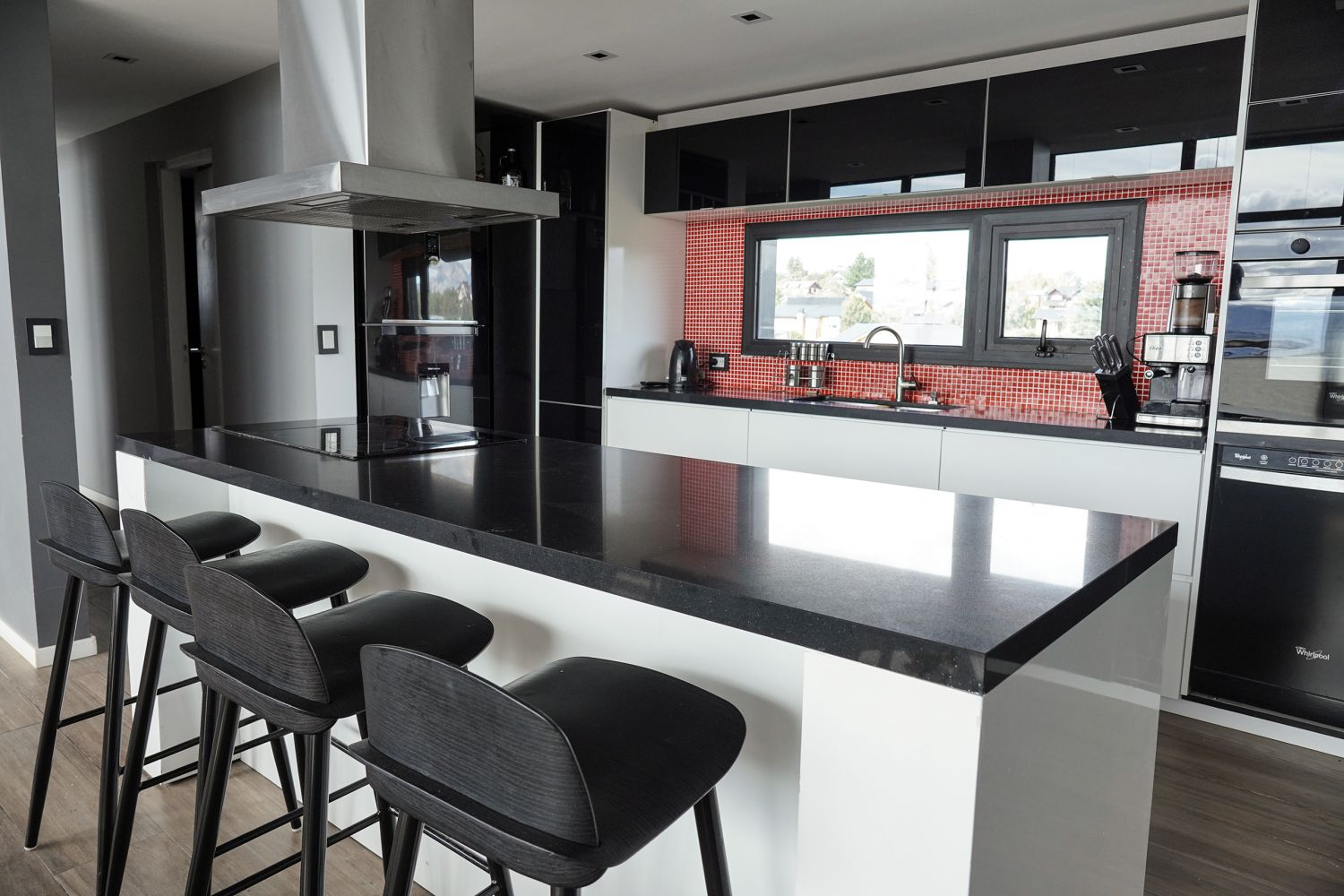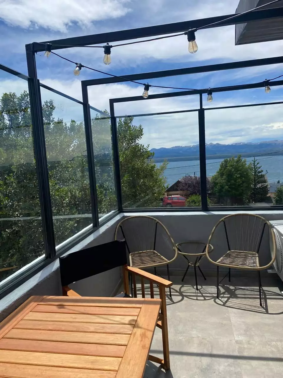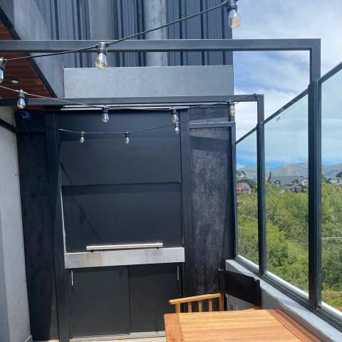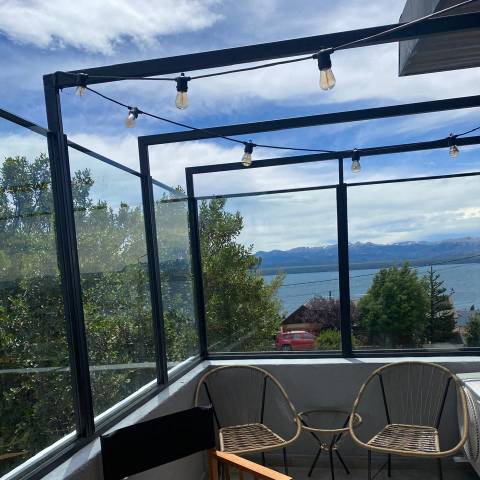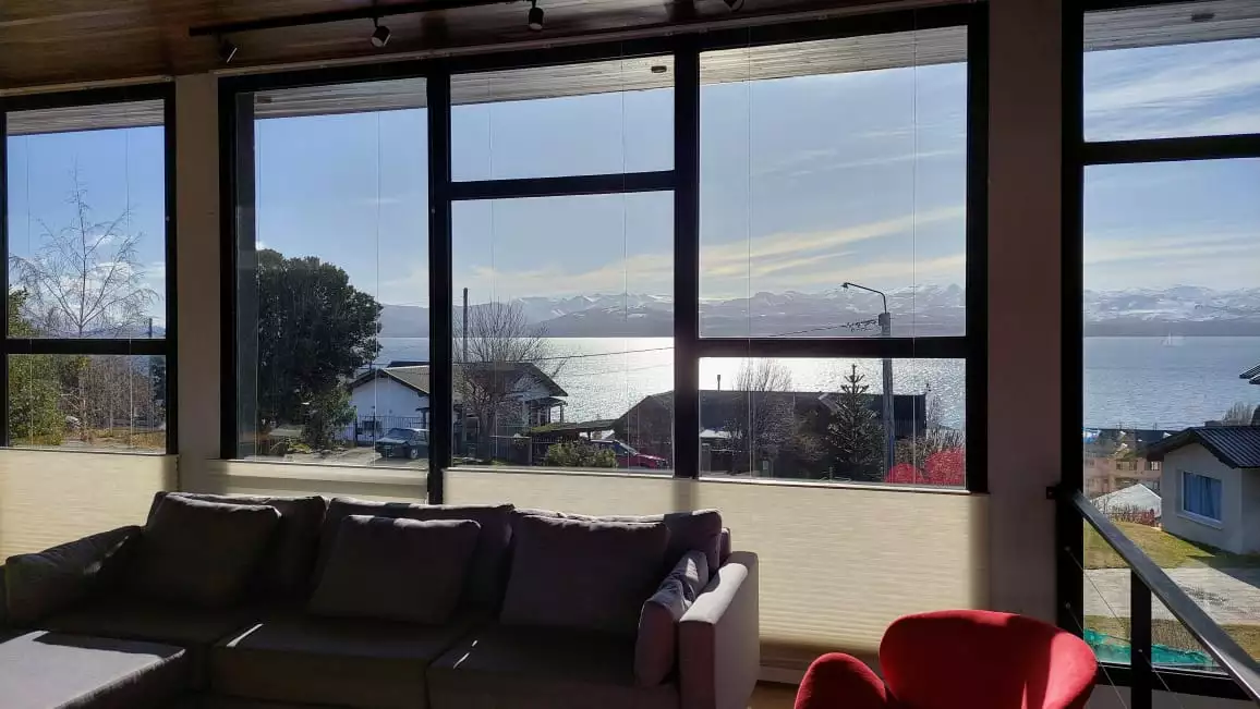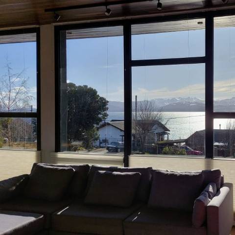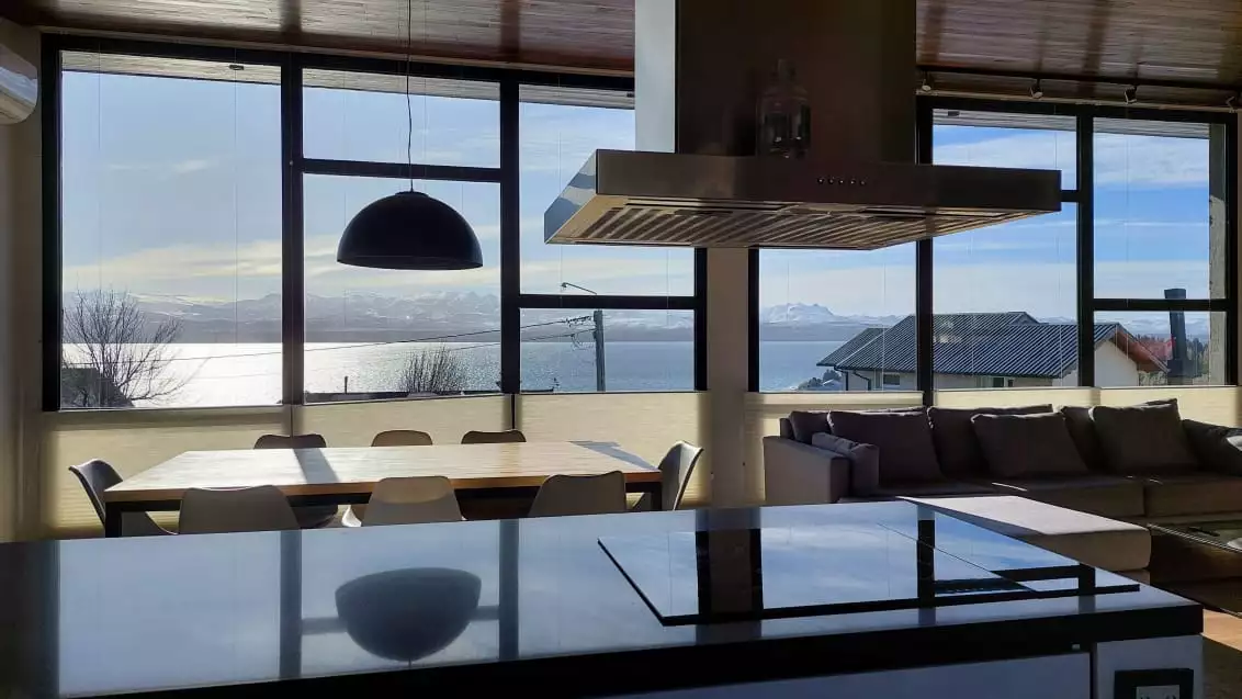 Hermosa casa moderna, estilo minimalista para 7 personas, con ambientes muy amplios y luminosos. Cocina totalmente equipada, salón luminoso y acogedor con vistas panorámicas al lago Nahuel Huapi. 3 confortables dormitorios y 3 baños . La casa cuenta con una parrilla que se puede utilizar tanto en el exterior como en el interior del alojamiento. Ideal para una estancia con familiares o amigos, para relajarse en un entorno natural y privilegiado, a sólo 10 minutos del centro cívico de Bariloche.