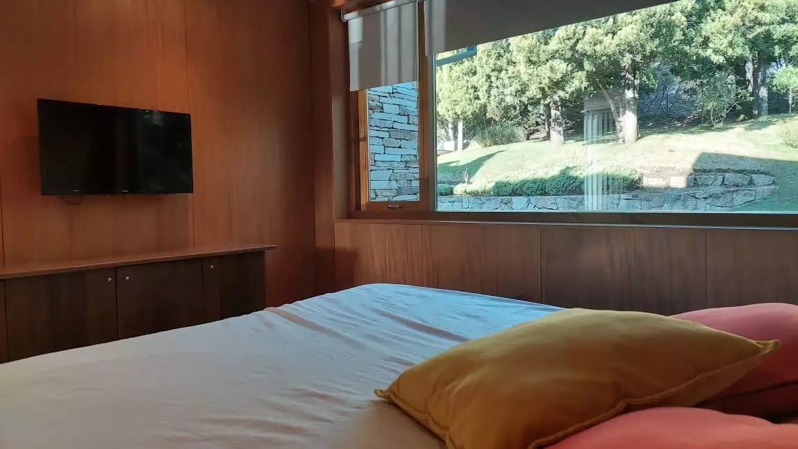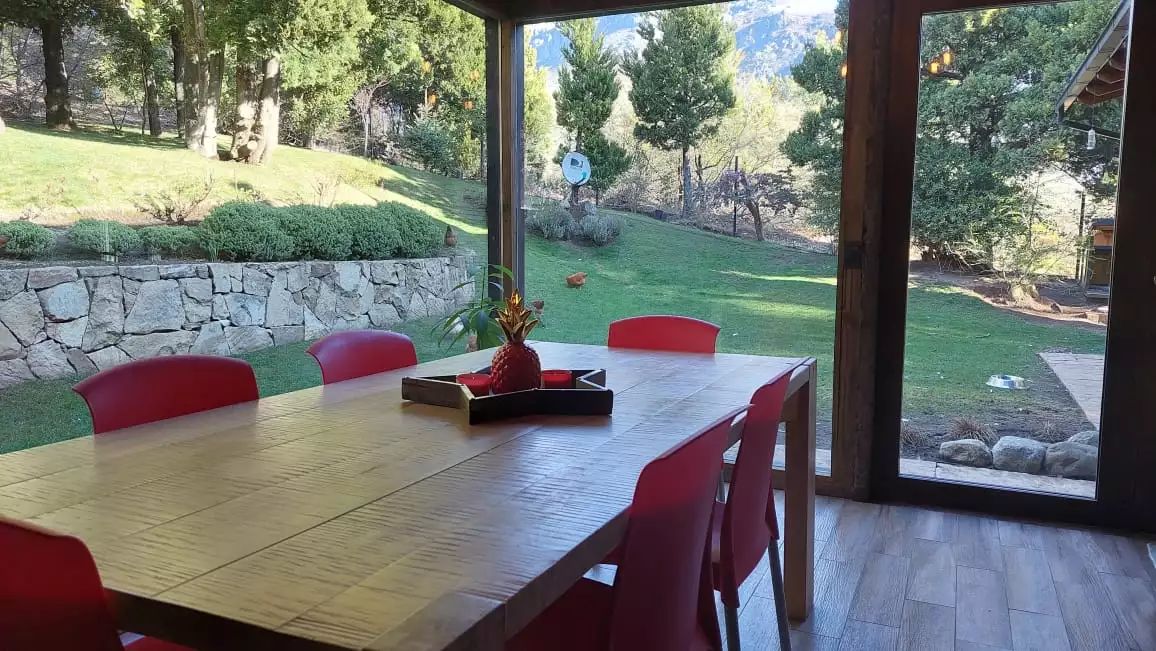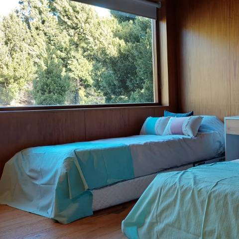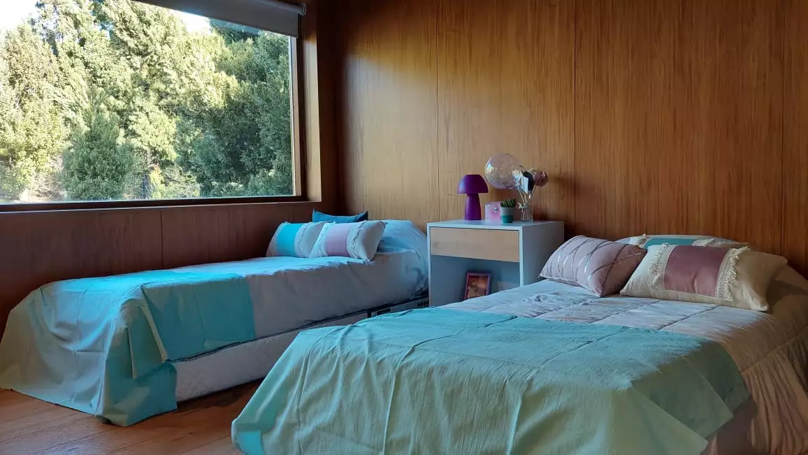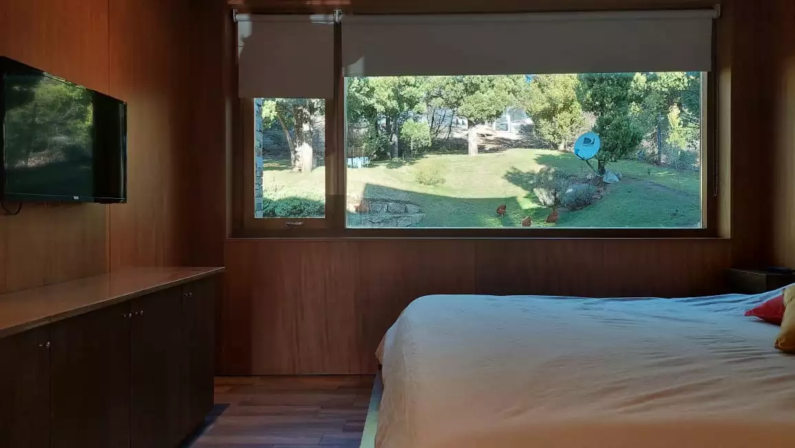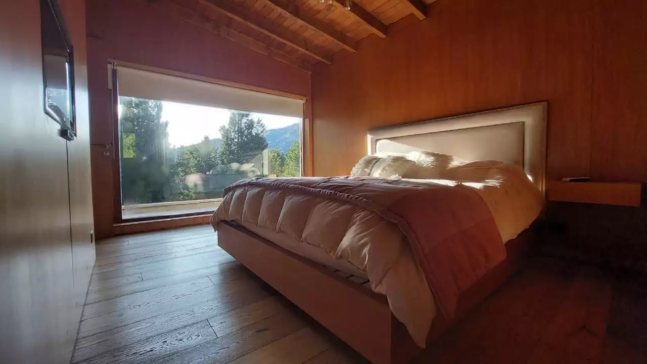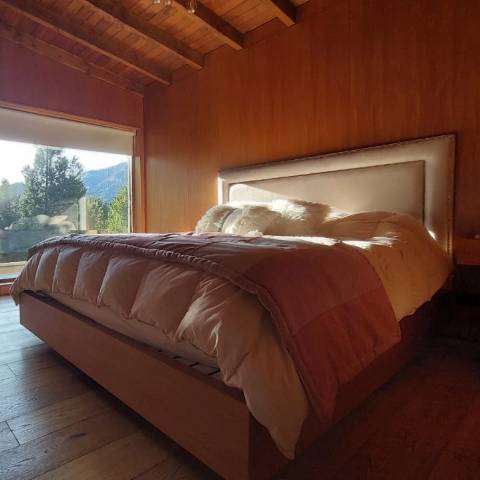Es una casa es única, amplia, luminosa y , desde sus ventanas se puede apreciar el Cerro Catedral, el Cerro Ventana y el Lago Gutiérrez. Es para un máximo de 8 personas, ya que buscamos la comodidad y la calidad en cada estadía. Cuenta con cuatro habitaciones, en las cuales en dos se pueden unir o separar las camas, según el gusto de los invitados. Tiene 3 baños con ducha y un toilette para que cada uno tenga su espacio.