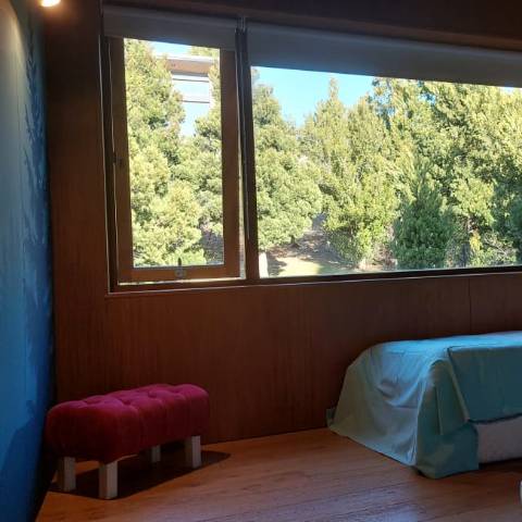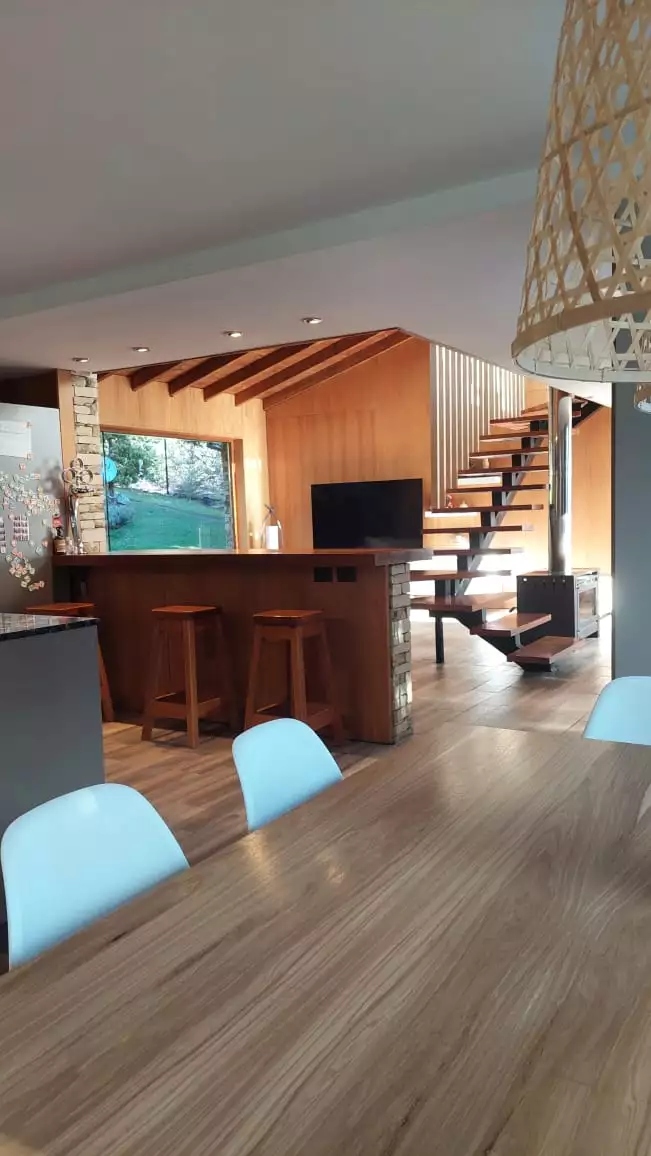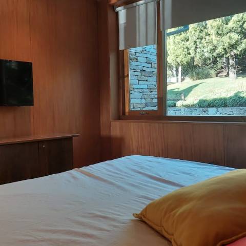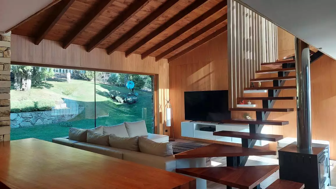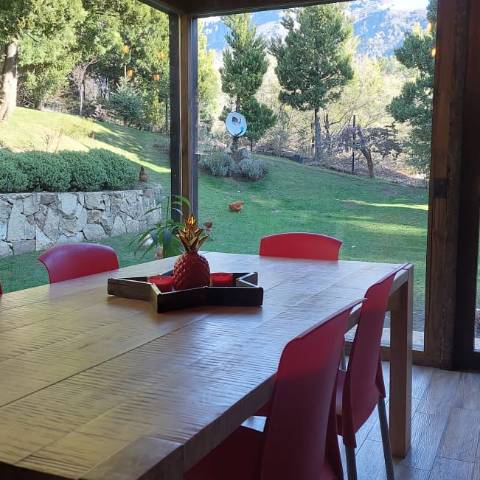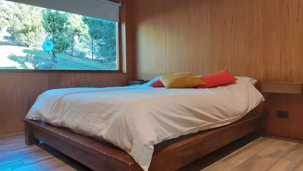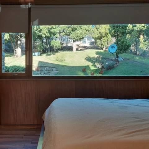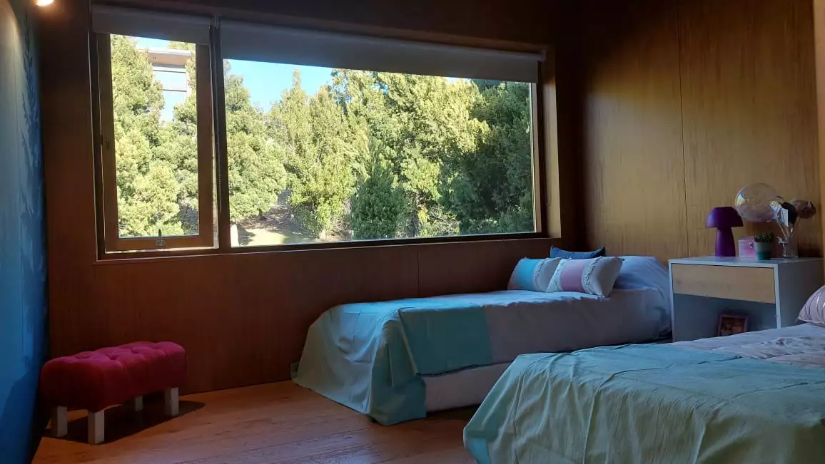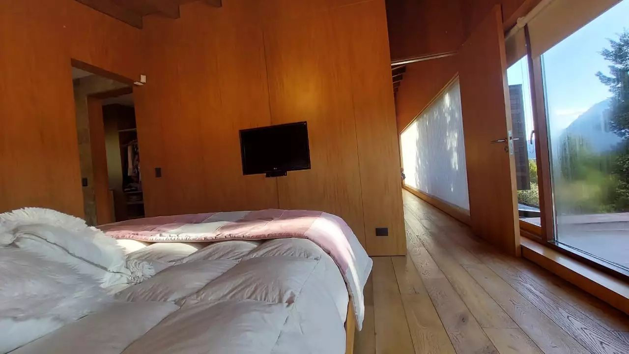 Es una casa es única, amplia, luminosa y , desde sus ventanas se puede apreciar el Cerro Catedral, el Cerro Ventana y el Lago Gutiérrez. Es para un máximo de 8 personas, ya que buscamos la comodidad y la calidad en cada estadía. Cuenta con cuatro habitaciones, en las cuales en dos se pueden unir o separar las camas, según el gusto de los invitados. Tiene 3 baños con ducha y un toilette para que cada uno tenga su espacio.