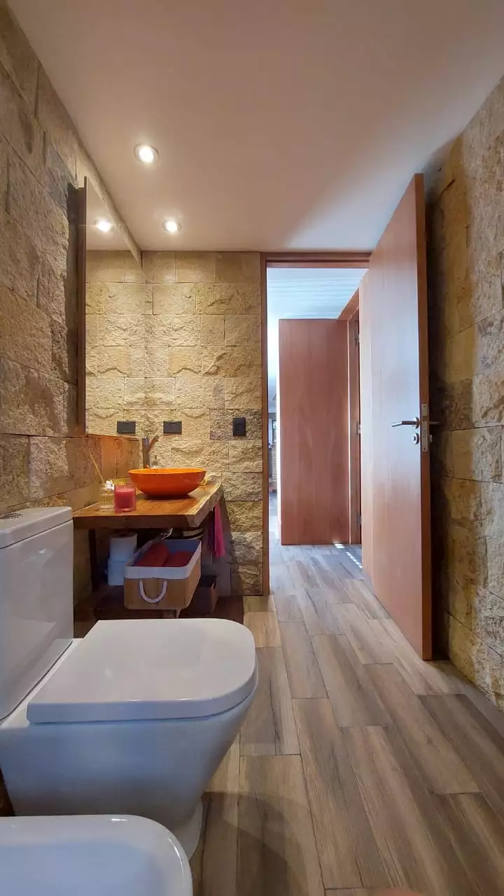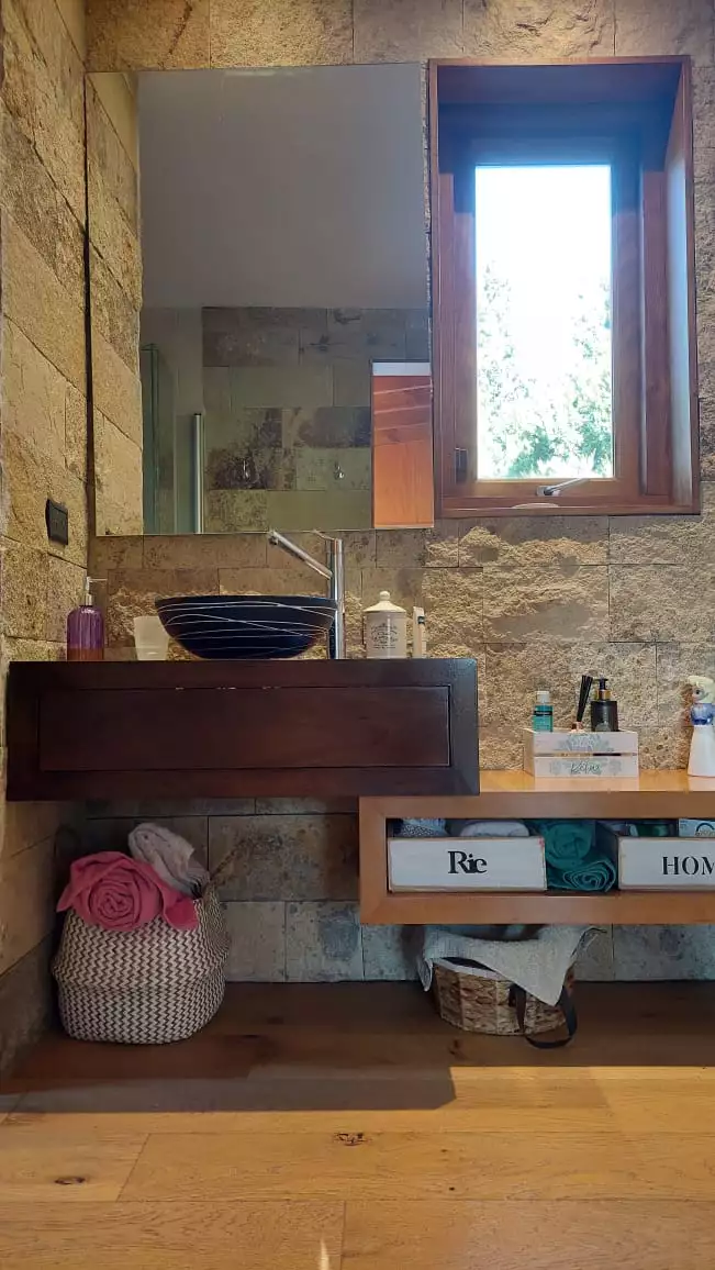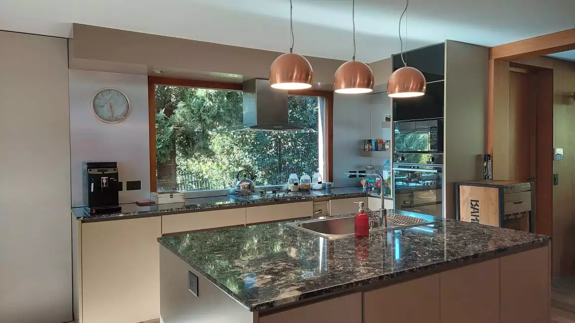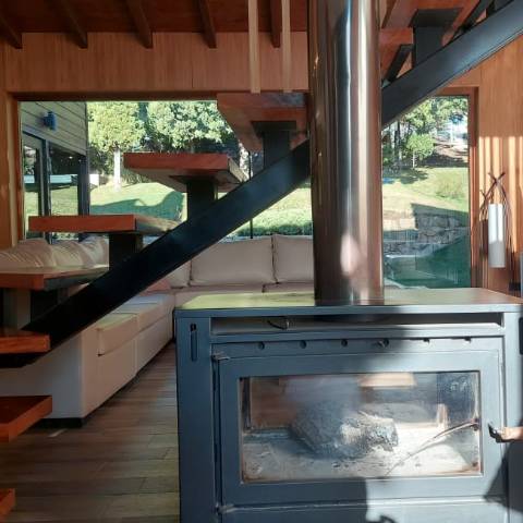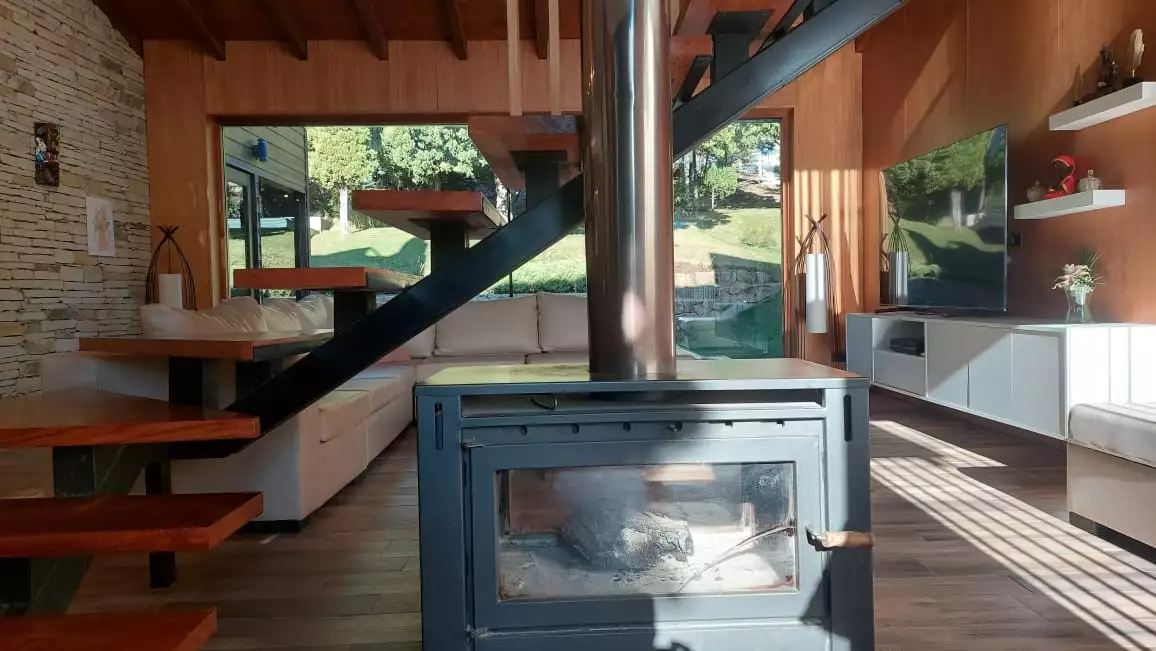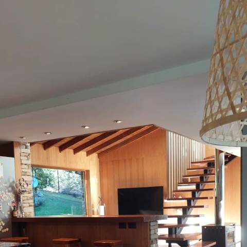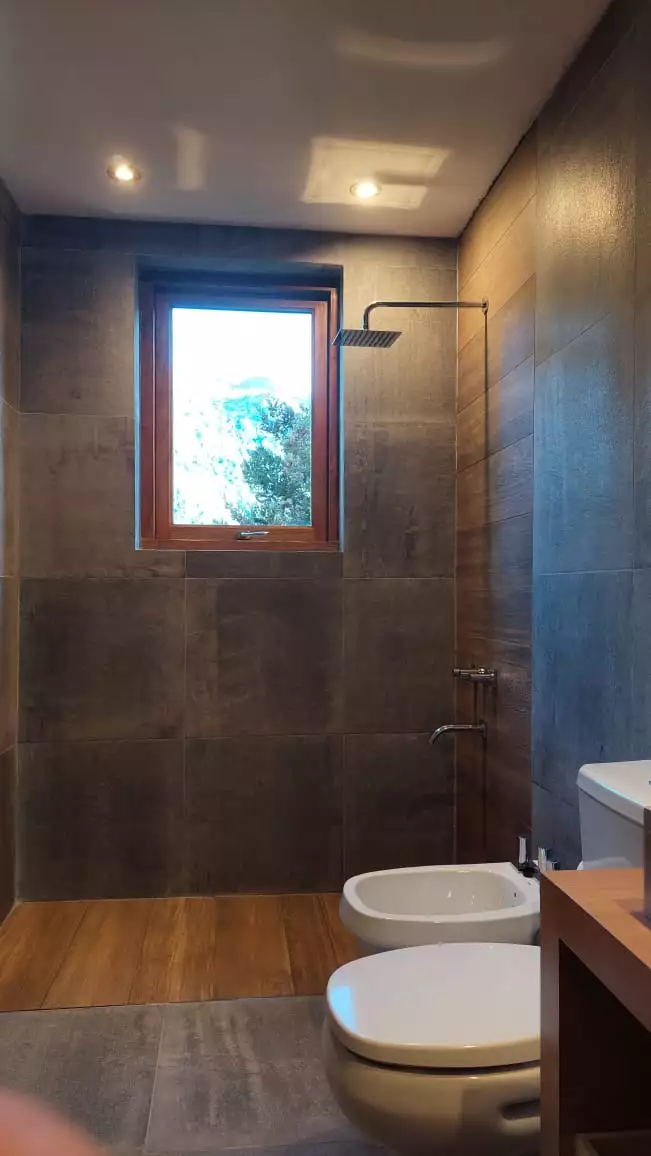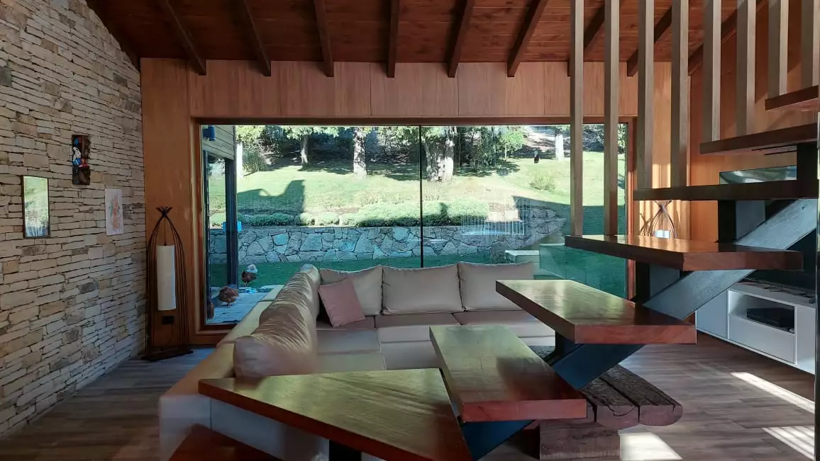 Es una casa es única, amplia, luminosa y , desde sus ventanas se puede apreciar el Cerro Catedral, el Cerro Ventana y el Lago Gutiérrez. Es para un máximo de 8 personas, ya que buscamos la comodidad y la calidad en cada estadía. Cuenta con cuatro habitaciones, en las cuales en dos se pueden unir o separar las camas, según el gusto de los invitados. Tiene 3 baños con ducha y un toilette para que cada uno tenga su espacio.