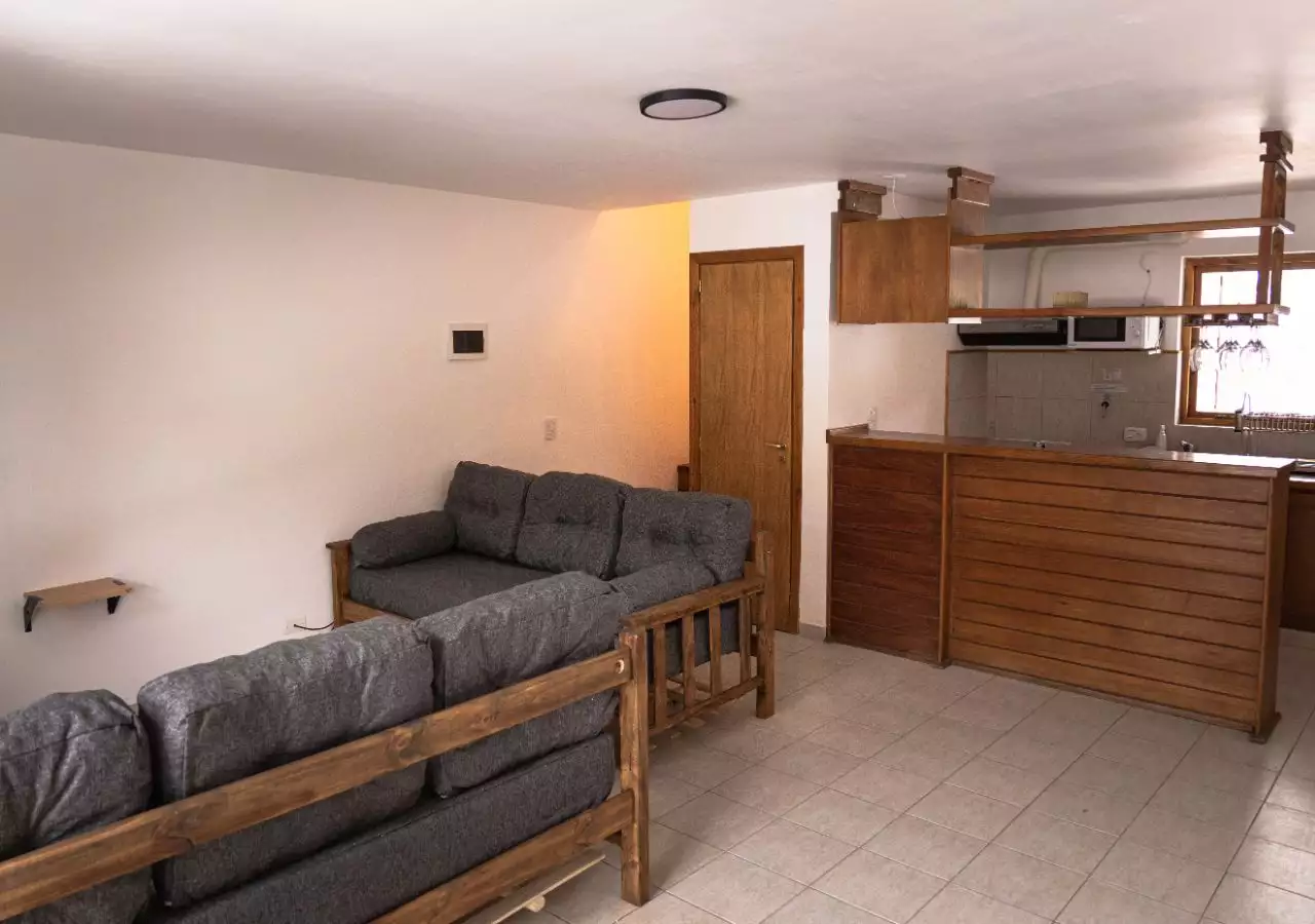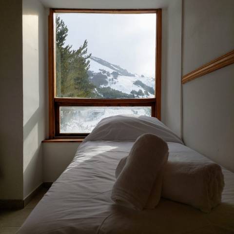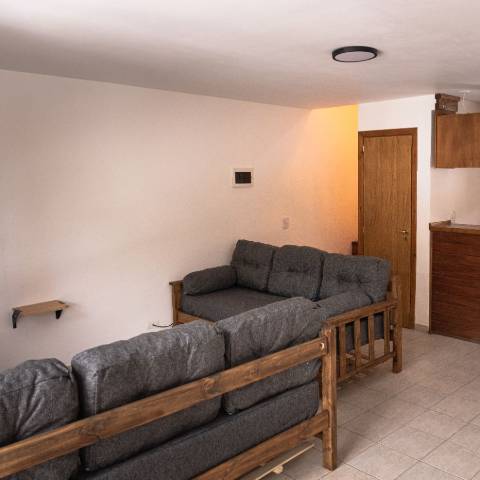 Vista a la montaña Wifi Calefacción con radiadores 2 a 6 Personas 1 o 2 Habitaciones Sofá cama 1 Baño con hidromasajes y 1 toilette en departamento de 2 habitaciones Estacionamiento privado Pileta climatizada Sauna y ducha escocesa 150 mtrs de medios de elevación