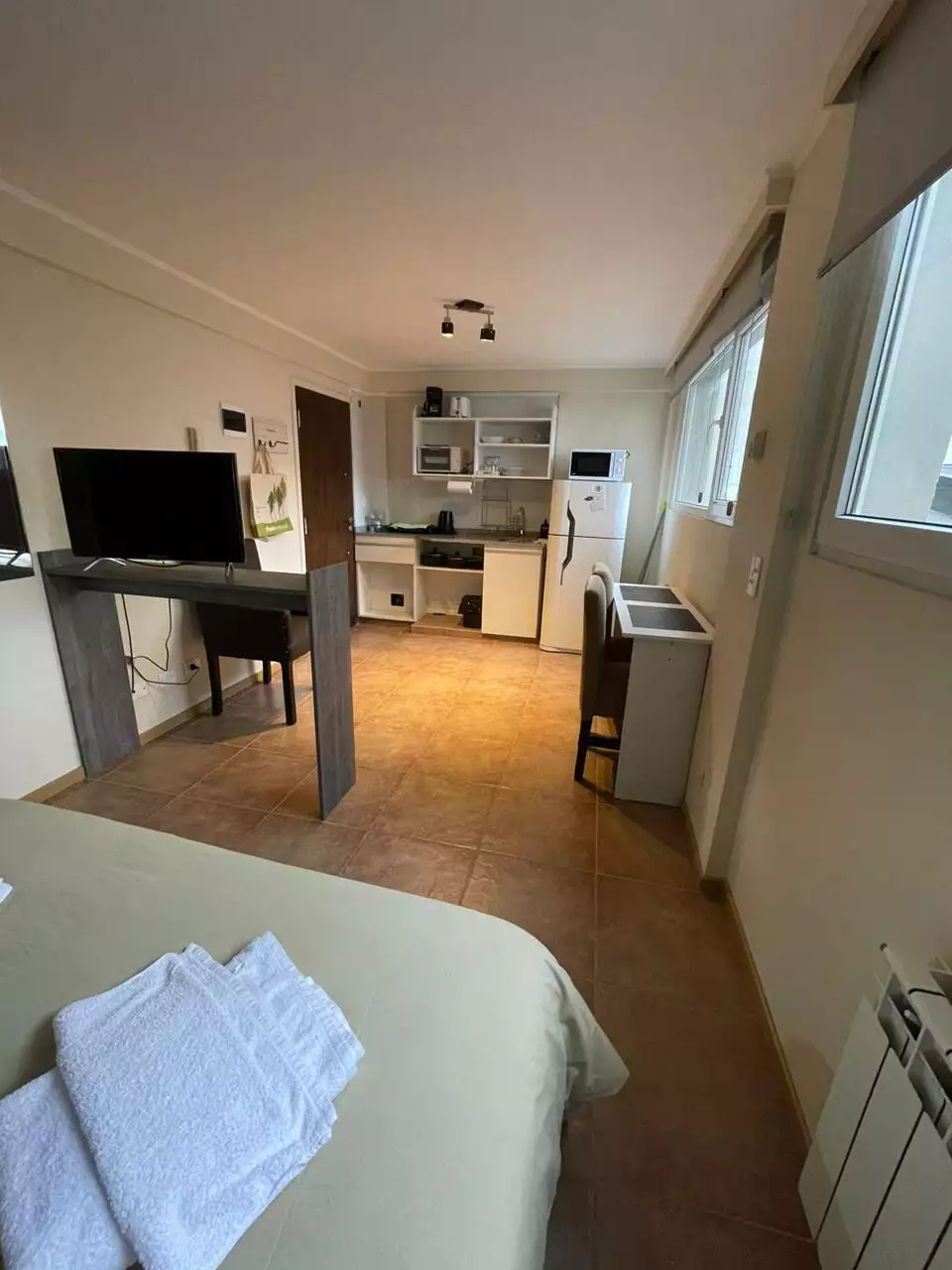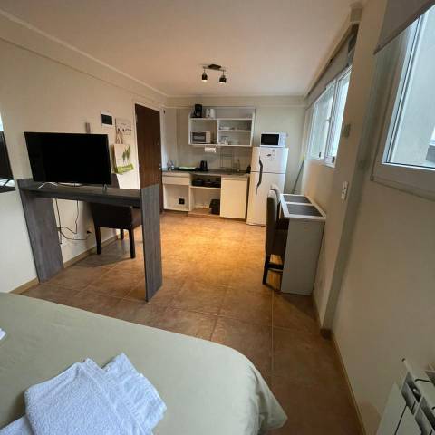 Departamento en pleno centro de Bariloche, sobre calle Mitre, ideal para 2 personas que quieran disfrutar de la ciudad. Se encuentra ubicado cercano al centro cívico y sobre centro comercial, peatonal de chocolaterías y bares. Con un fácil acceso a todos los atractivos turísticos de Bariloche. La cocina está equipada con microondas, heladera, pava eléctrica, tostadora, cafetera, anafe, hornito eléctrico y vajilla completa También están incluidas las sábanas y toallas.